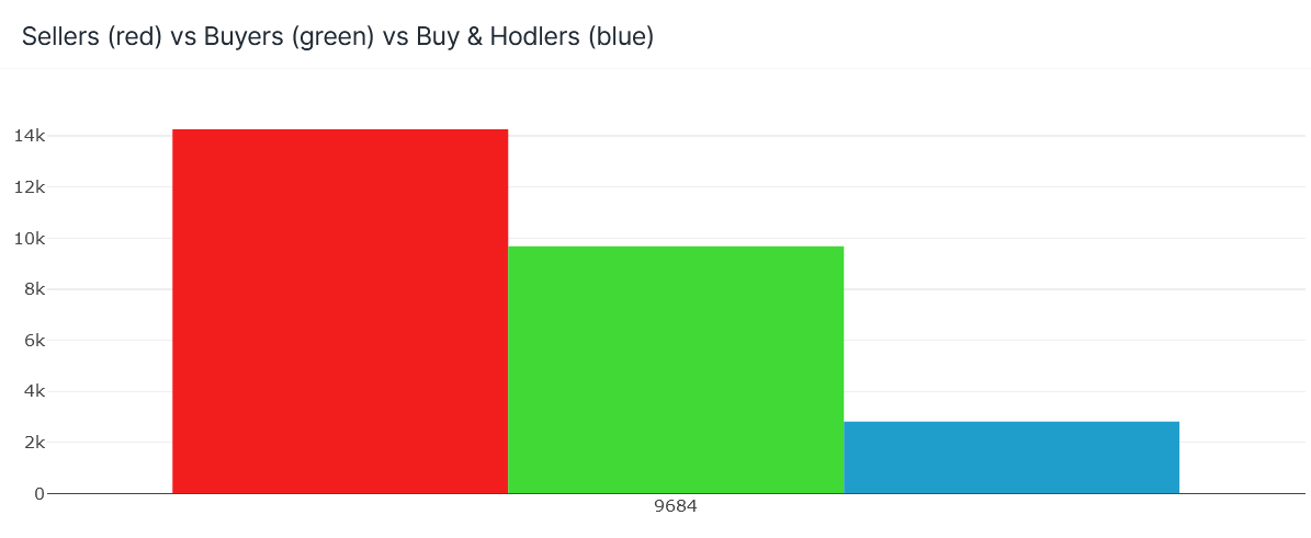 During this 2 month period, addresses that: 1. Have sold Luna (red): 14260 2. Have bought Luna (green): 9684 3. Have bought Luna and HODL-ed: 2820