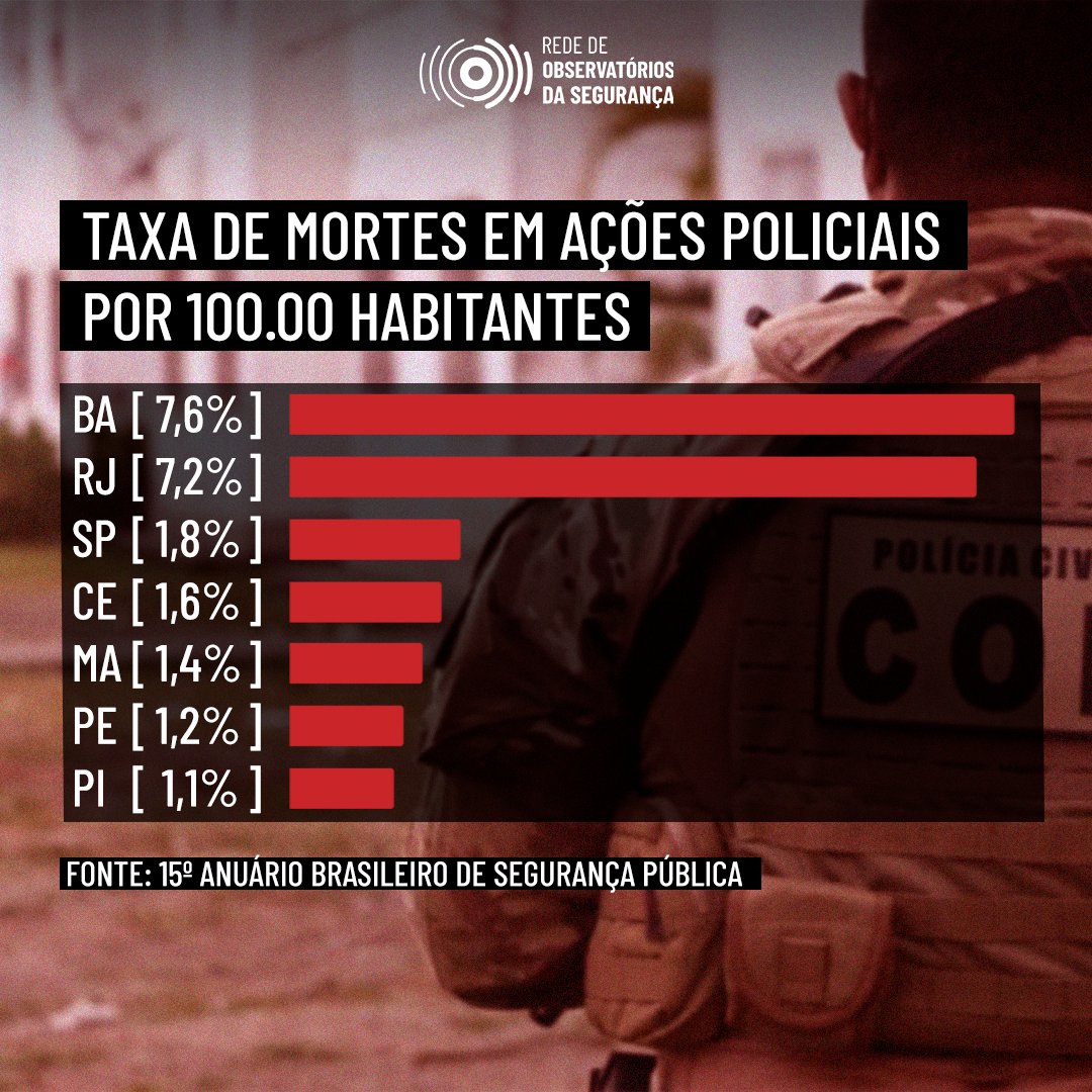 Entre os estados monitorados pela @rede_seguranca, na Bahia, a taxa de mortalidade é de 7,6% (+)