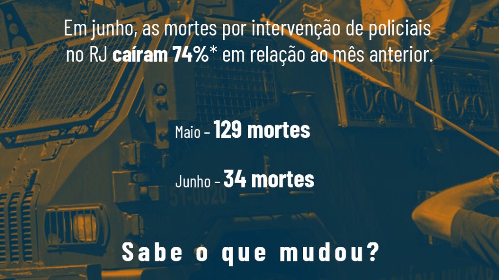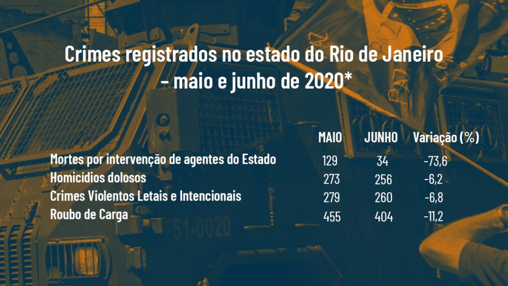 Resultado: o número de mortos por intervenção policial caiu de 129, em maio de 2020, para 34, em junho. Uma redução de 74%. Os defensores da política de confronto poderiam imaginar que a violência iria aumentar. Mas não foi o que aconteceu.