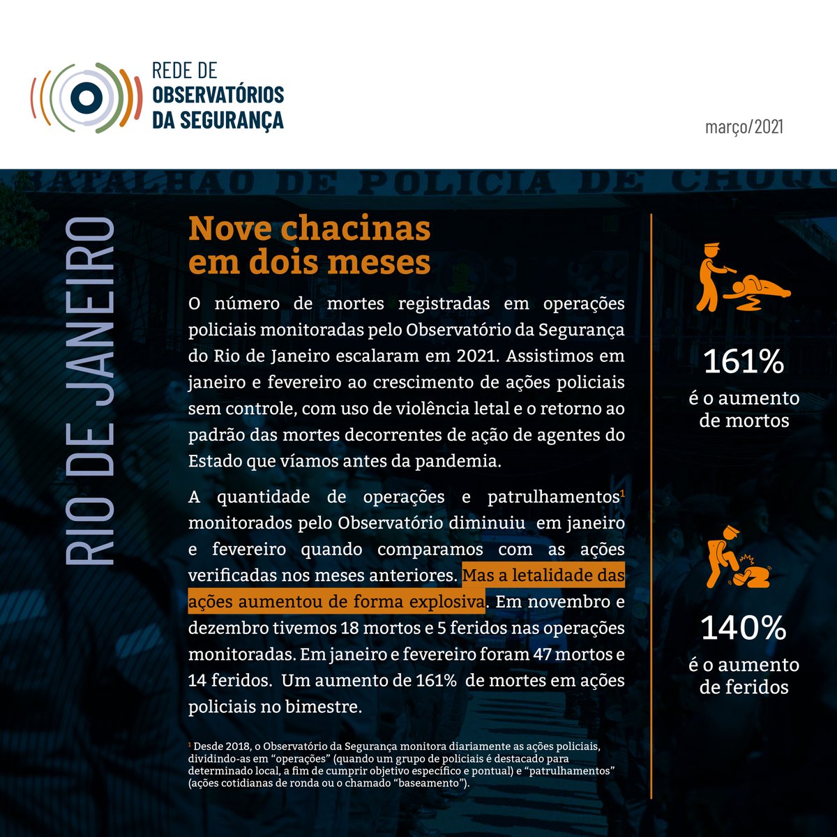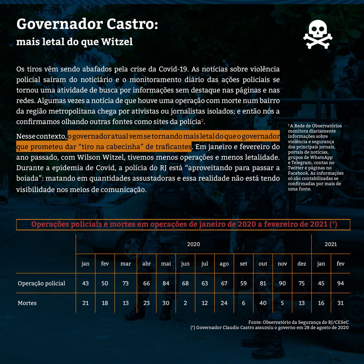 🚨 RJ: nove chacinas policiais em dois meses. @claudiocastroRJ, governador em exercício, é mais letal que @wilsonwitzel - que falava para acertar na cabecinha. As mortes em ações policiais aumentaram 161% no primeiro bimestre de 2021. Segue o fio 👇🏾