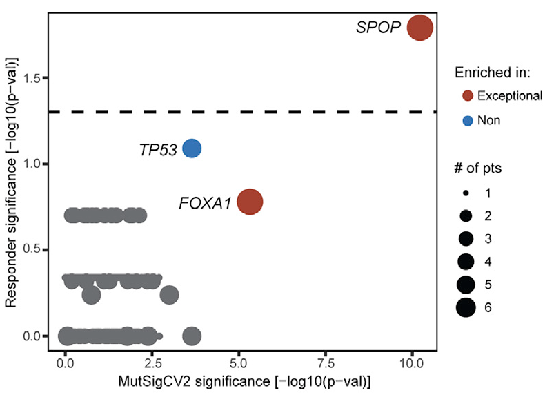We found SPOP mutations (and, curiously, deletions in SPOPL - a paralog) highly enriched in patients with exceptional responses...