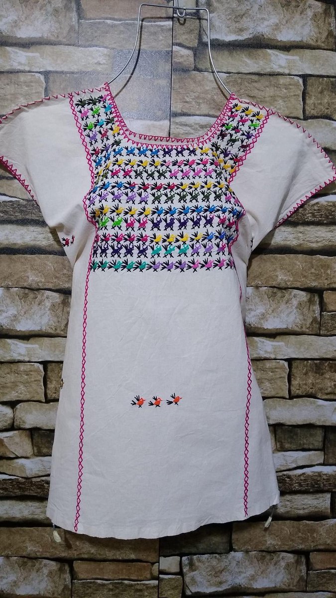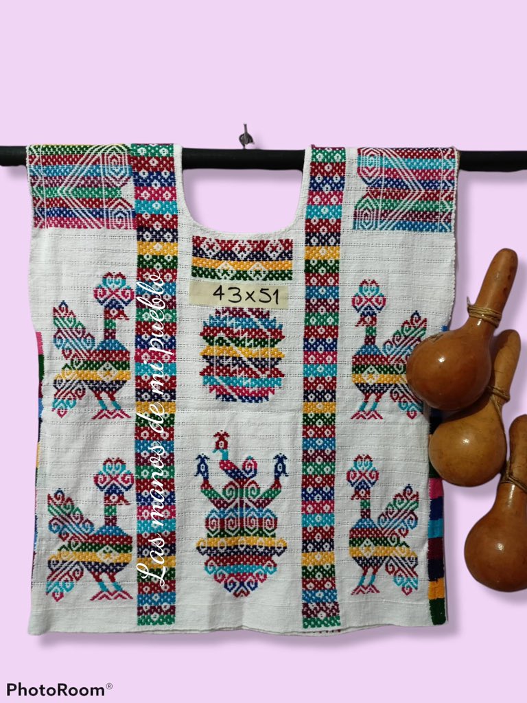 Huipil de animalitos bordado a mano sobre manta : 500 pesos