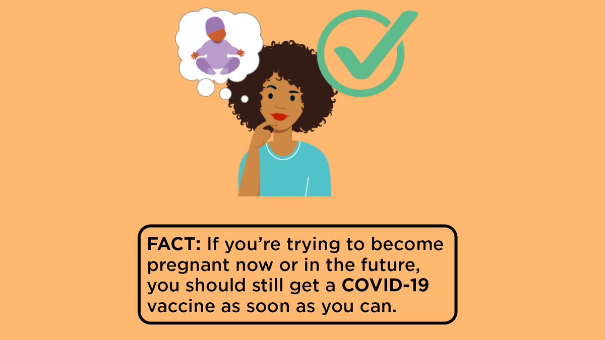 FACT: You should get vaccinated against #COVID19 if you’re trying to get pregnant now or in the future. No evidence to date shows that any vaccines, including COVID-19 vaccines, can cause fertility problems in men or women.