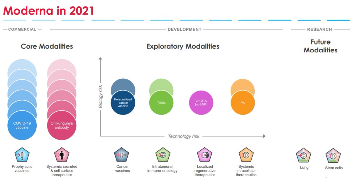 Em recente apresentação da Moderna, observa-se que, além do aprimoramento para vacinas contra a COVID-19, há um investimento em desenvolver alternativas para Chikungunya, vacinas contra câncer, regeneração de tecidos entre outras abordagens!