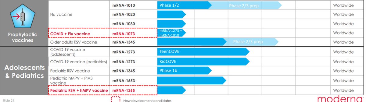 Ainda, a Moderna está desenvolvendo versões atualizadas de sua vacina variantes de preocupação do SARS-CoV-2, como a #Beta e a #Delta que apresentam um escape imunológico parcial. Esses estudos, atualmente, estão em fase 2 de desenvolvimento.