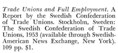 It looks like Meidner presented a paper called "Trade Unions and Full Employment", which explained the Rehn-Meidner model, to the LO Congress in 1951. Does anyone know where I can get the translated text of that paper?