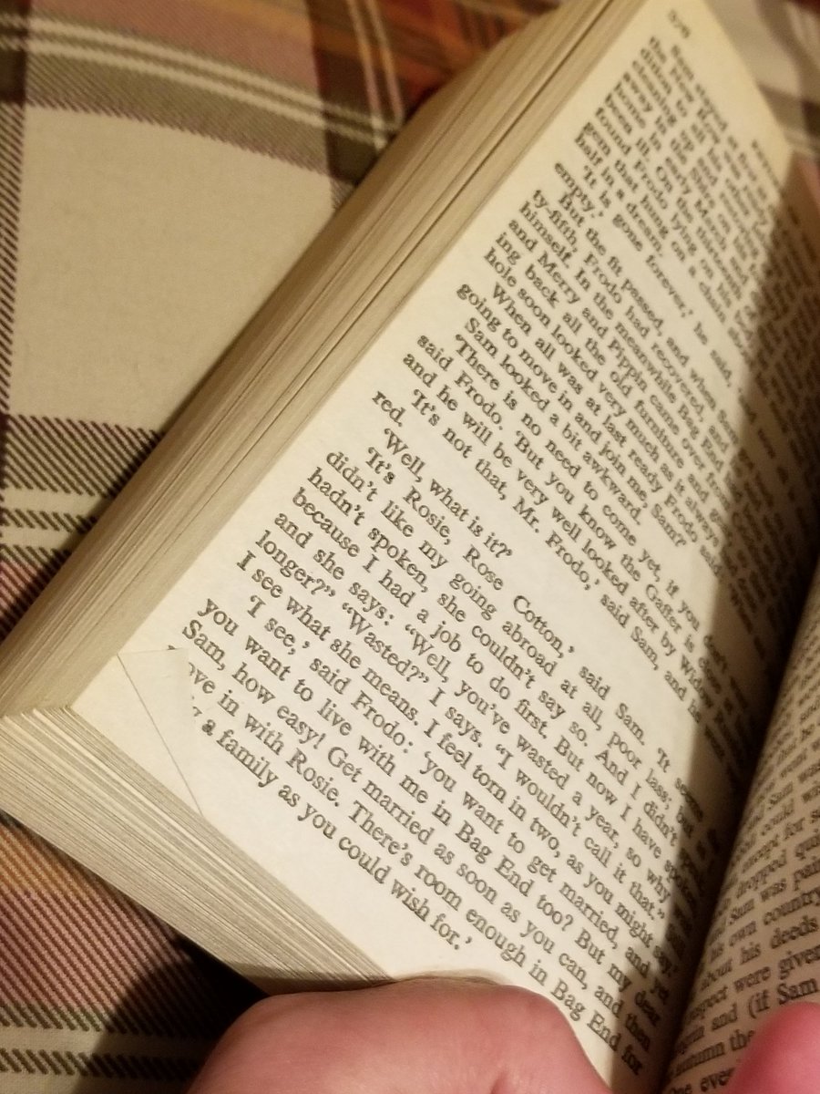 I was going to tweet a joke about how my ideal relationship is Sam and Rosie going to live with Frodo at Bag End, and when I went looking for the specific passage in the book, I found that I'd dog eared that page about 20 years ago.