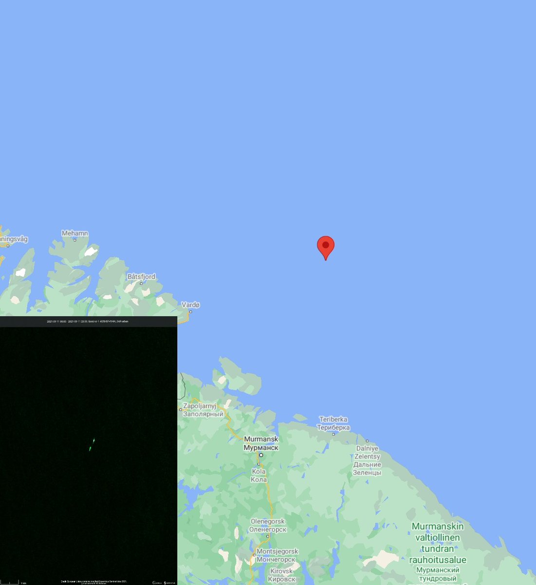 One poss NORFLT warship, approx 55nm north of Mys Teriberskiy. Image