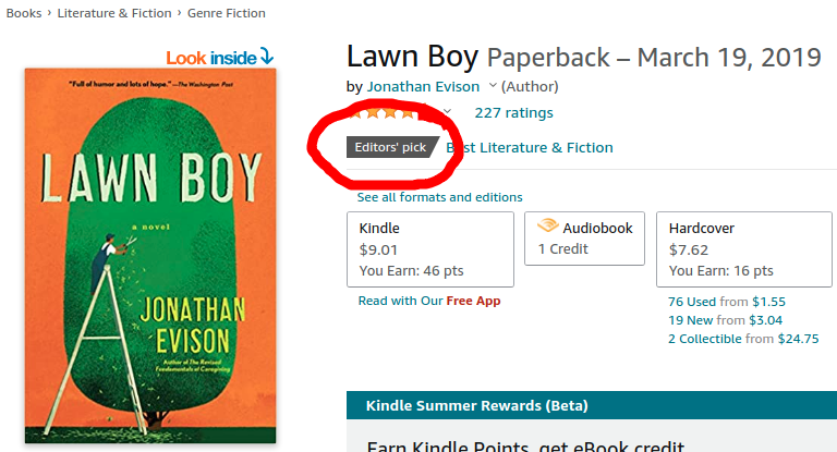 Let's get one thing straight. Evison's "Lawn Boy," with its open discussion of sex acts between a pair of underage boys, is not appropriate for (1) elementary school kids, because it's inappropriately sexual, and (2) older kids, because it's inappropriate pedophilic for them.