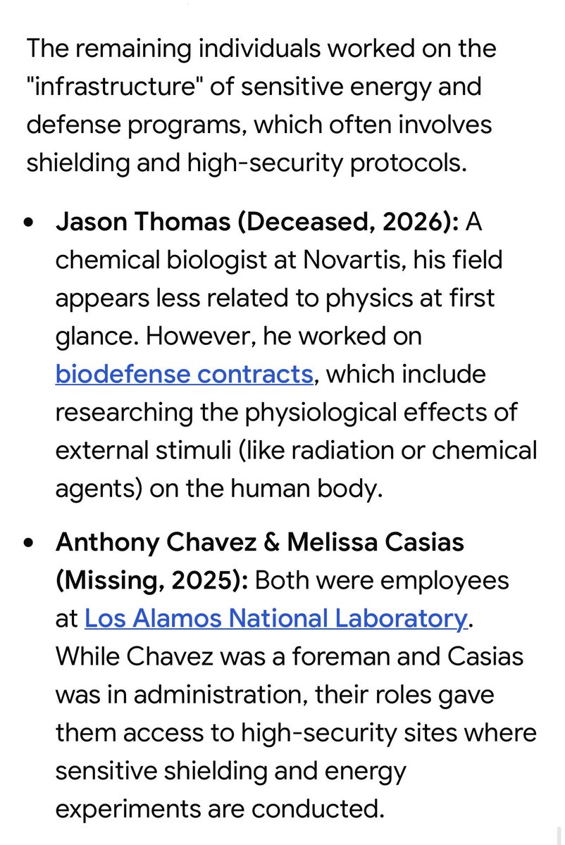 🧠Their own personal Havana Syndrome attacks and ‘shielding research’ link the "missing /dead" scientists. Nearly all of them were experts in fields highly adjacent to directed energy weapons, pulsed radio-frequency energy, & alloys used in shielding.