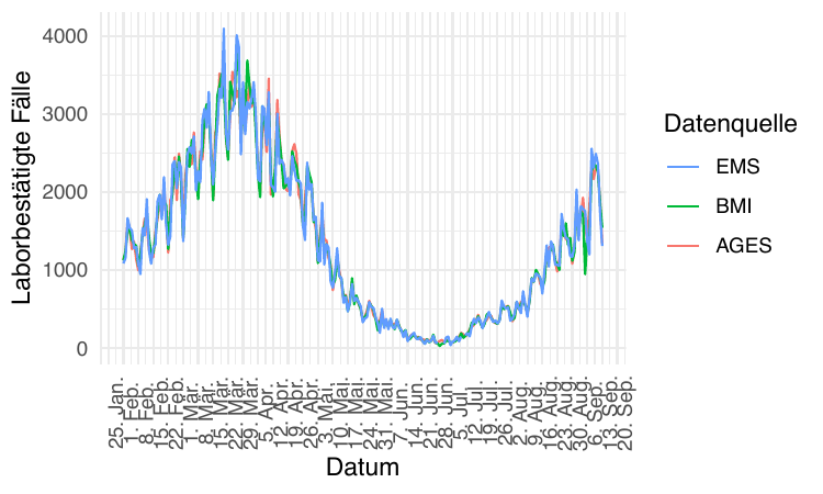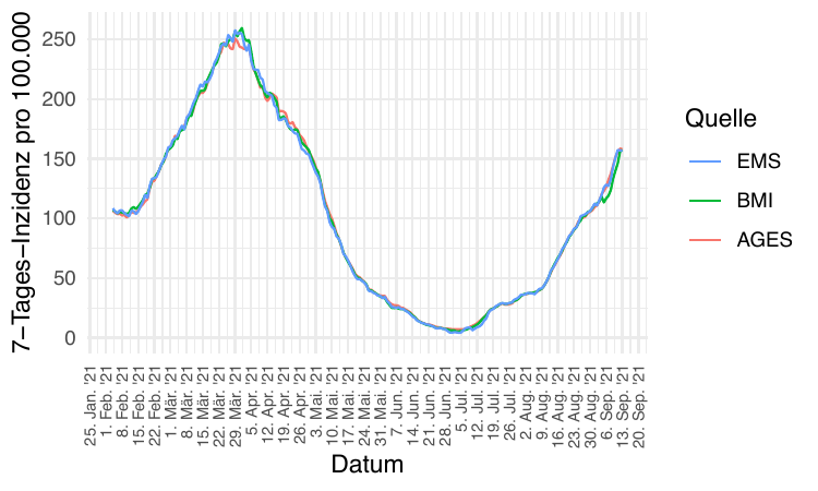 Die folgenden Postings verwenden Daten aus der Morgenmeldung aus dem EMS. Diese Daten ordnen die Fälle dem Meldedatum zu.