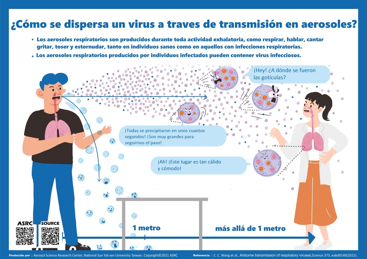 Estos aerosoles son usados por los patógenos (como el virus SARS-CoV-2) para movilizarse una vez que son generados por distintas actividades comunes (hablar, cantar, toser, estornudar, respirar...). Aunque invisibles, pueden infectar a una persona que los respire directamente. /5