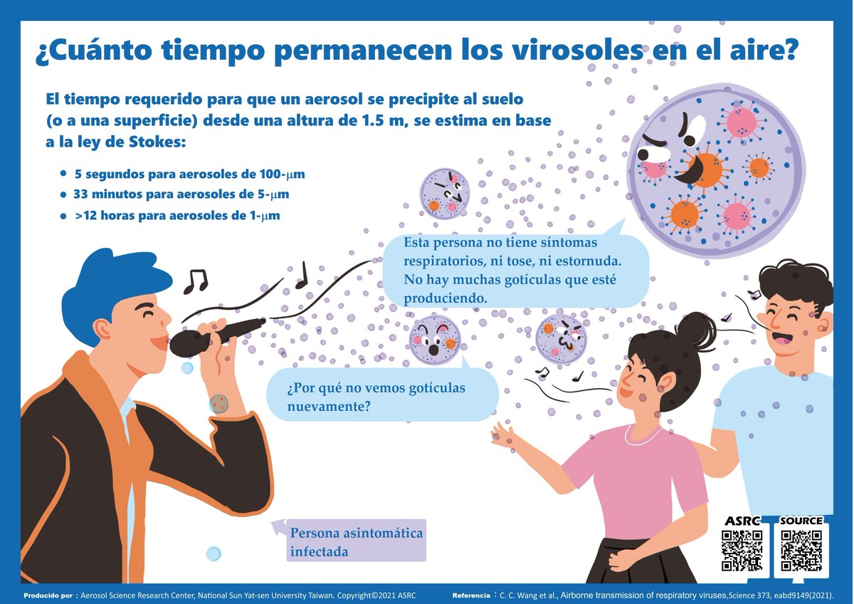La alta estabilidad de los virosoles en el aire, la cual es dependiente de su tamaño, determina cómo éstos pueden mantenerse en espacios con poca ventilación y contribuir al contagio de las personas que ahí se encuentren. /7