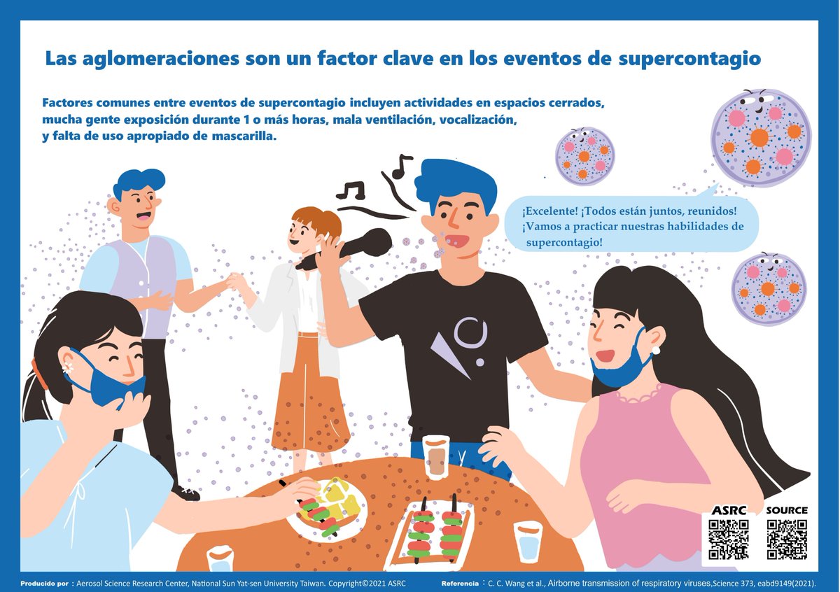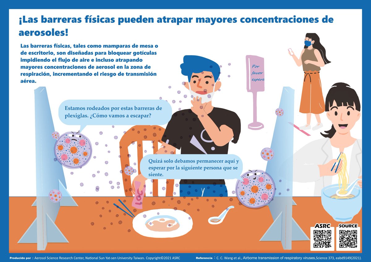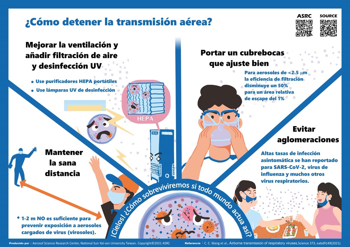 Este material visual puede ser empleado en escuelas y actividades de divulgación para ayudar a una mejor comprensión de cómo el virus SARS-CoV-2 se contagia a través de aerosoles y cuáles son las medidas más apropiadas para mitigar su transmisión. /2