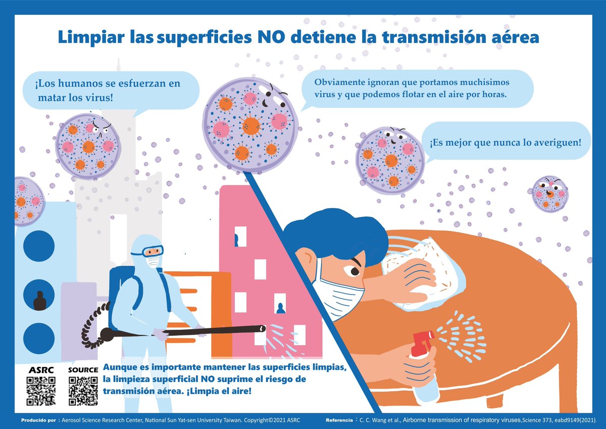 Aunque limpiar las superficies sirve, NO DETIENE la transmisión aérea del virus. ¡Es más importante limpiar el aire! /16