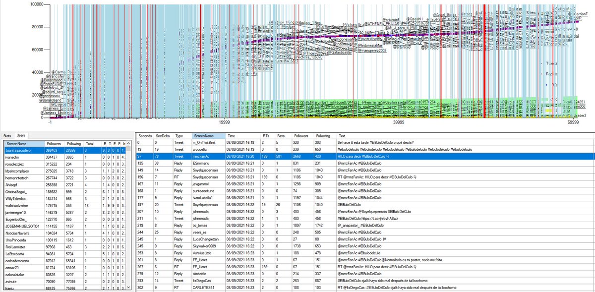 Primero veamos quienes empezaron (tabla derecha) y las cuentas más grandes que participaron (tabla izquierda):