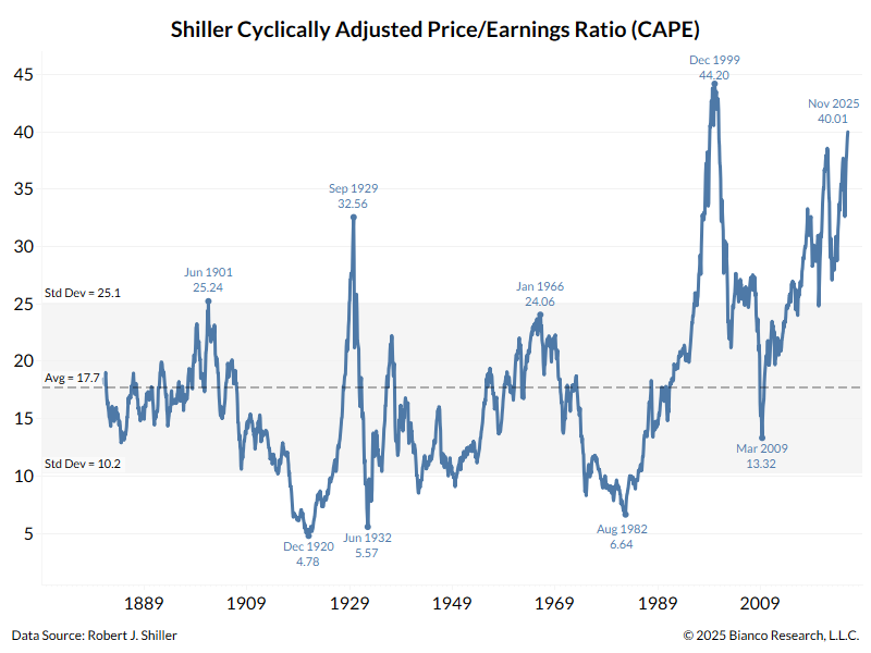 At 40, it is one of the highest readings ever, even higher than 1929.