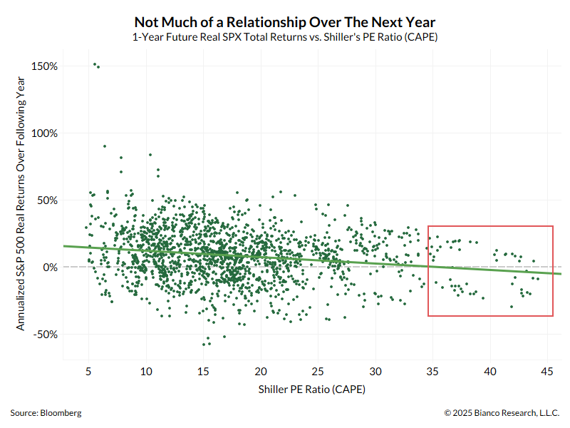 The red box is the returns when the CAPE is above 34. It's a mixed bag of positive and negative returns.