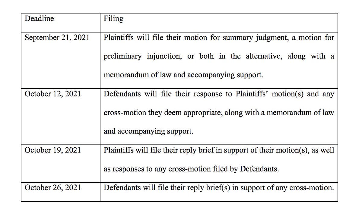 West Flagler says it will be filing a motion for summary judgment and, in the alternative, a motion for preliminary injunction "no later than September 21, 2021." Likely uptick in PACER search fees that day.