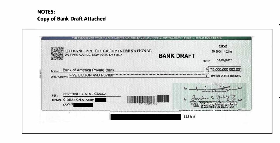 Meet Tarciana C. Rodriguez, the administratrix of the Estate of Severino Garcia Santa Romana. She signed the bank drafts totaling $5.1 billion that Brian Davis (per his lawsuit) delivered to Bank of America for deposit in Urban Echo’s bank account: bit.ly/3orL3Mr