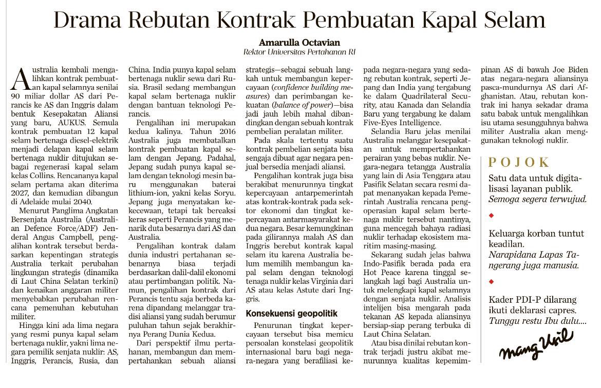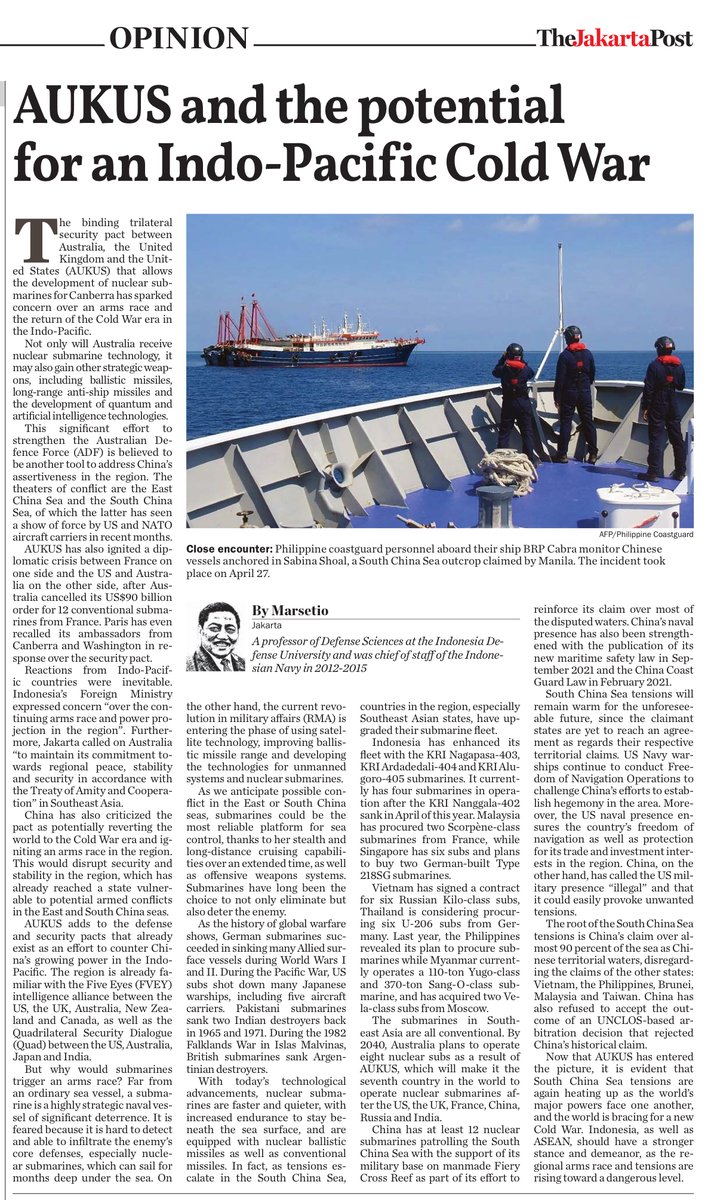 Former FM Natalegawa, "the inception of AUKUS, like the revitalization of Quad before it, was a reminder for ASEAN of the cost of its dithering and indecision on the complex and fast-evolving geopolitical environment."