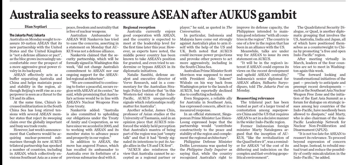 Some initial reactions on AUKUS plans, mainly from an Indonesian perspective👇