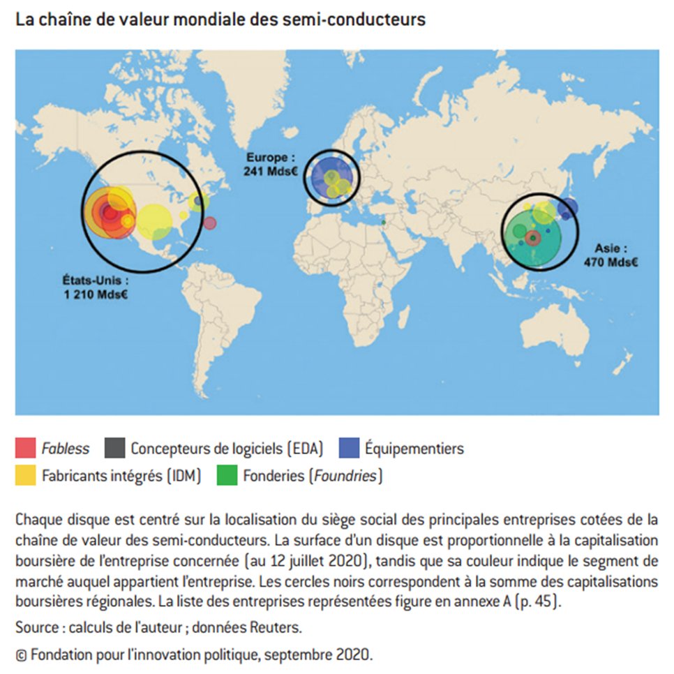 ➡️ Les semi-conducteurs sont un produit devenu essentiel. Mais les fonderies se trouvent en Asie, tandis que la majeure partie de la chaîne de valeur se situe aux 🇺🇸.