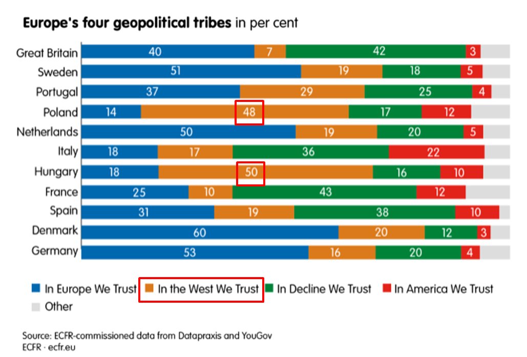 Les Polonais et les Hongrois mettent l’Occident largement devant l’Europe (@ecfr) ⤵️