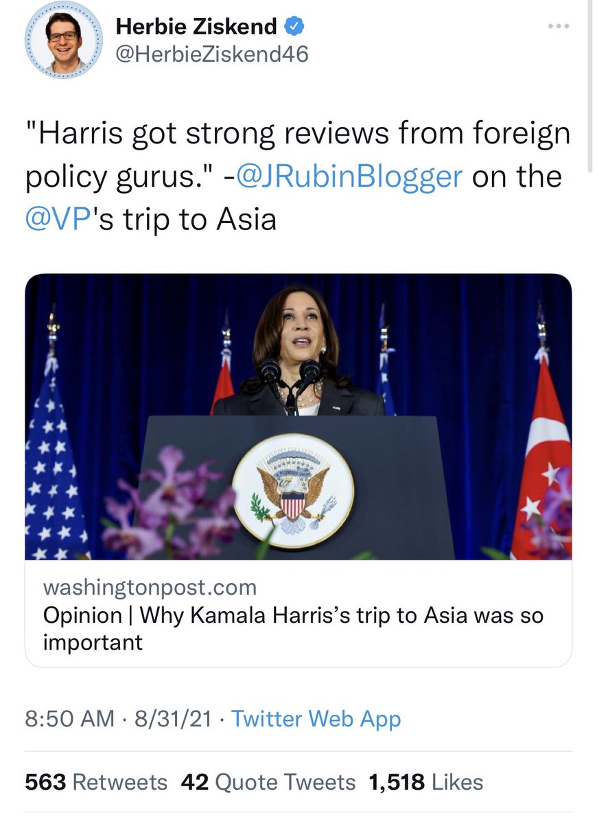 One told West Wing Playbook that they declined to do so because they thought it was just too embarrassing to earnestly share a Rubin column.