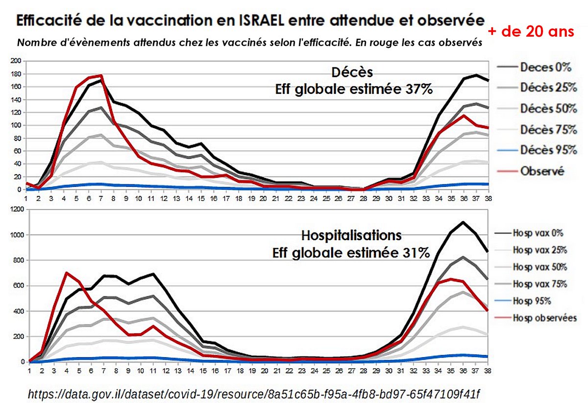 (J'ai appris mais sans certitude que les gens hospitalisés dans les 24 ou 48 h d'une injection sont comptés comme non vaccinés. Ces chiffres sont donc optimistes pour les "vaccins")