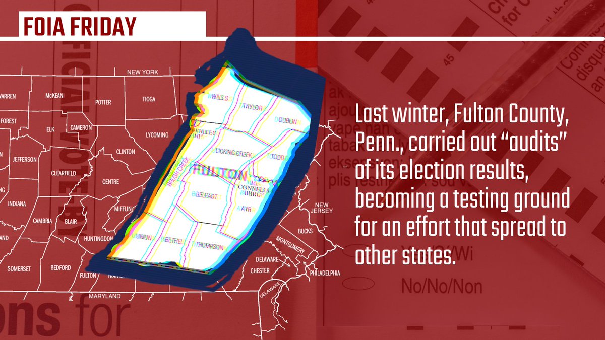 Last winter, Fulton County, Penn., carried out “audits” of its election results, becoming a testing ground for an effort that spread to other states. This week, county officials were ordered to begin releasing "audit" records in response to our records requests. #FoiaFriday