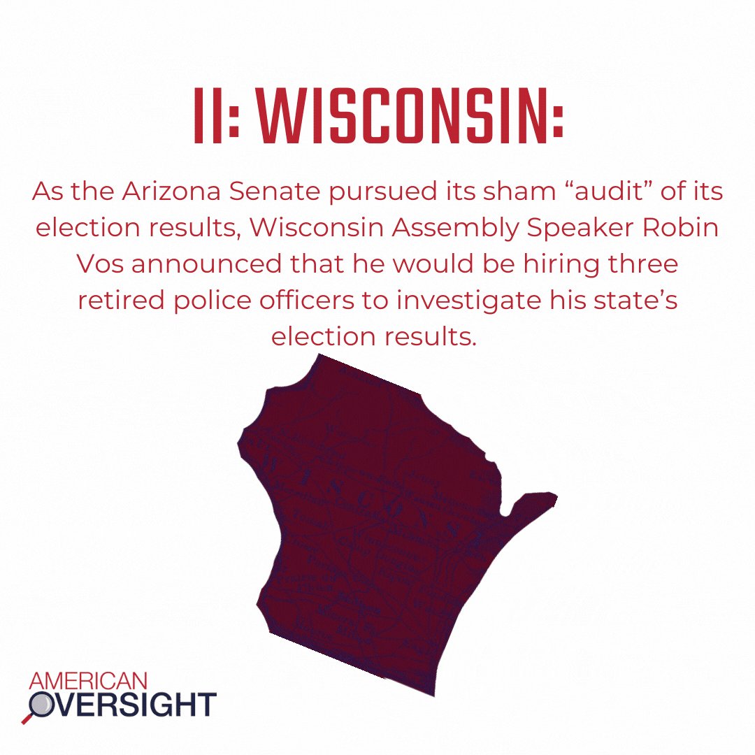 In Wisconsin, Assembly Speaker Robin Vos hired retired state Supreme Court Justice Michael Gableman to oversee an investigation of the state’s election results. americanoversight.org/investigation/…