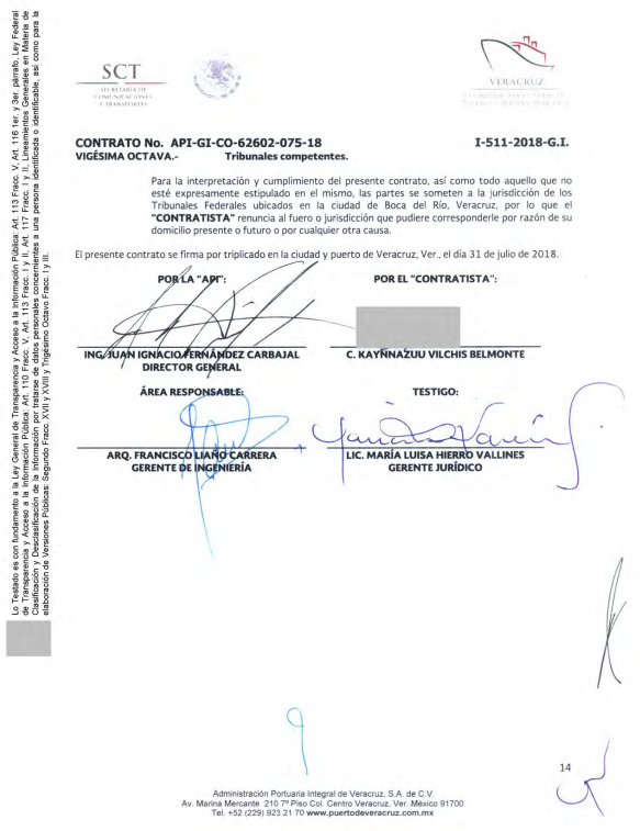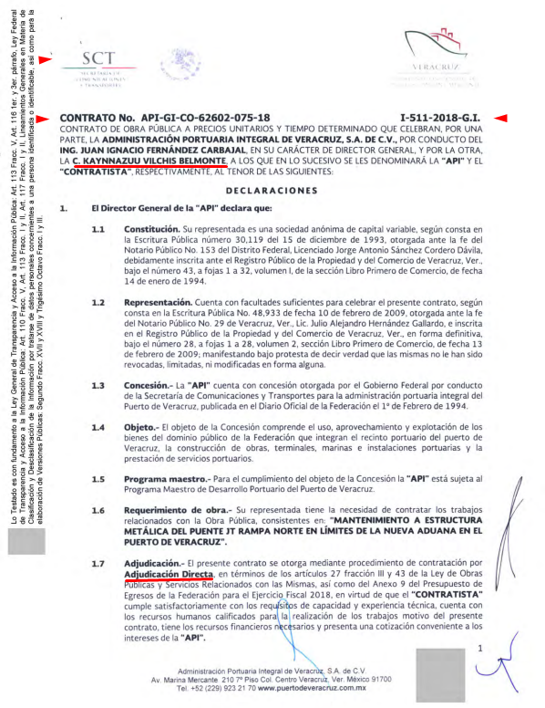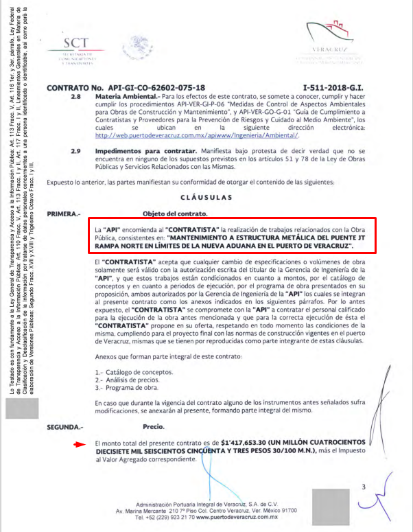📖🔹API Veracruz, compañía paraestatal del Gobierno Federal, otorgó un 3er. contrato vía directa a Kaynnazuu Vilchis Belmonte, por el Mantenimiento a estructura metálica del Puente JT rampa norte en límites de la Nueva Aduana en el Puerto de Veracruz, por un monto $1, 644,477.83