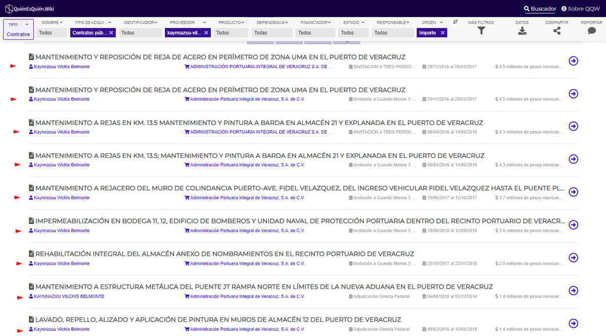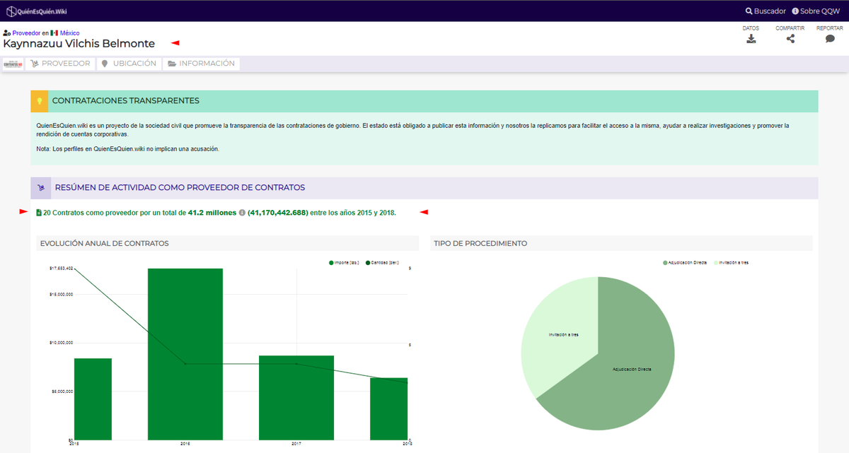 🚩Plataforma de Transparencia QuienEsQuien.Wiki registra que bajo el mandato de EPN (2015-2018) se otorgaron 20 contratos a Kaynnazuu Vilchis Belmonte, tía de Ana Elizabeth García Vilchis, encargada de “Quién es quién en las mentiras “por un importe total de $41,170,442.688