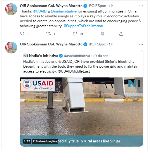Today @OIRSpox posted this tweet, making publicity to USAID ("they provided the tools needed to fix the power grid"), an ONG that is behind regime change in several countries.