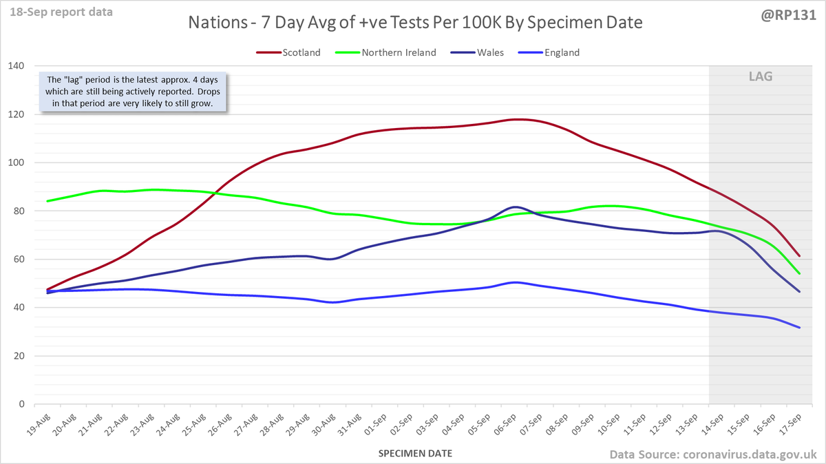Overall England is DOWN 21% on previous Thursday and day-1 lateral flow positives are also down by 16%.