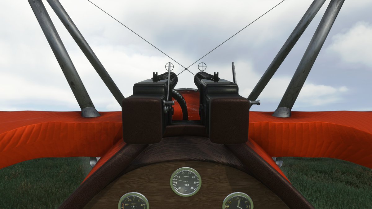 The first thing I'm going to note is that, as in real life, taxiing the Fokker Dr.I is a hell of a challenge. For one thing, all those wings almost completely block any forward view. Some pilots compare the wings to "venetian blind" that closes when the tail is down.