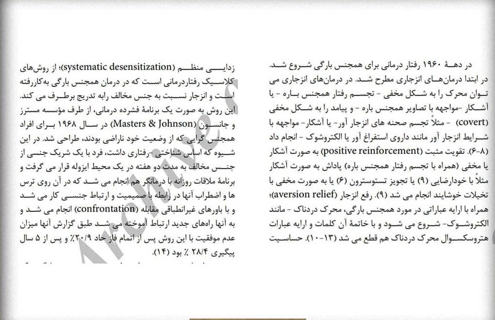 7/7 درمان همجنسگرایی در دهه 1960، بر پایه روش های شرطی سازی معکوس.