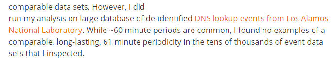 this periodicity was reported at Daily Kos in Nov 2016 here: dailykos.com/stories/2016/1… The author searched a large database of DNS lookups was unable to locate ANY other examples of 61 minute periodicity, tho 60 minute periodicity not uncommon.
