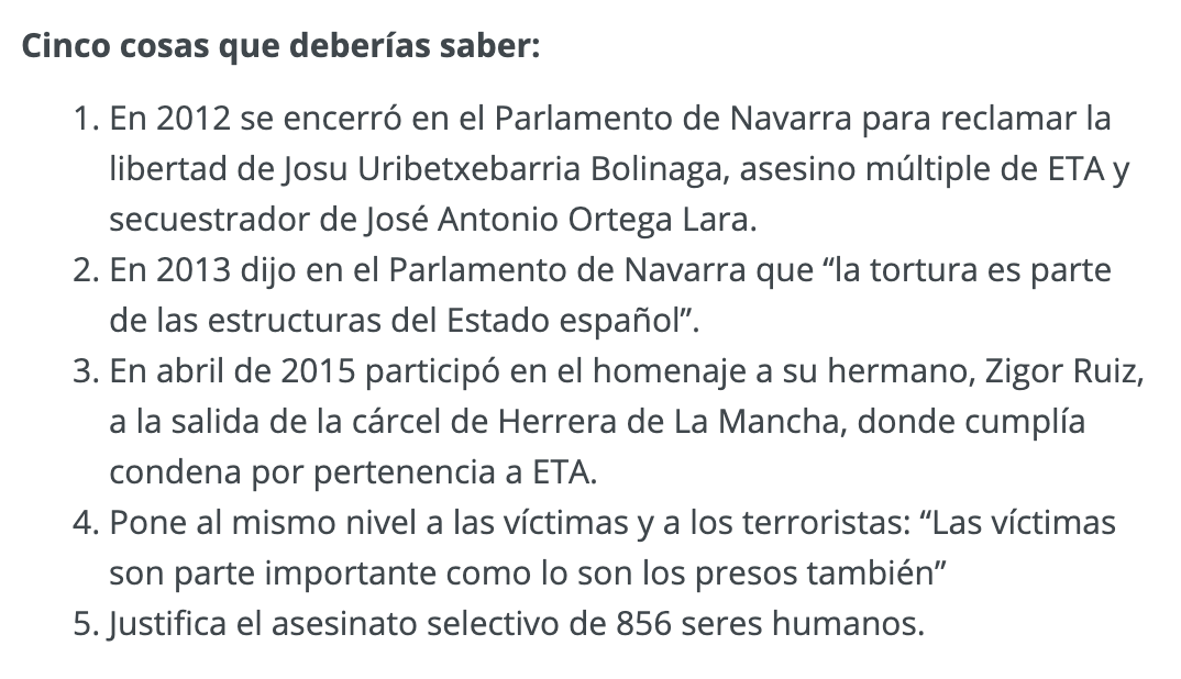 8. Jone Goirizelaia, quien se niega a condenar el terrorismo de ETA porque "la izquierda abertzale nunca hace lo que los demás esperan que haga porque sí".