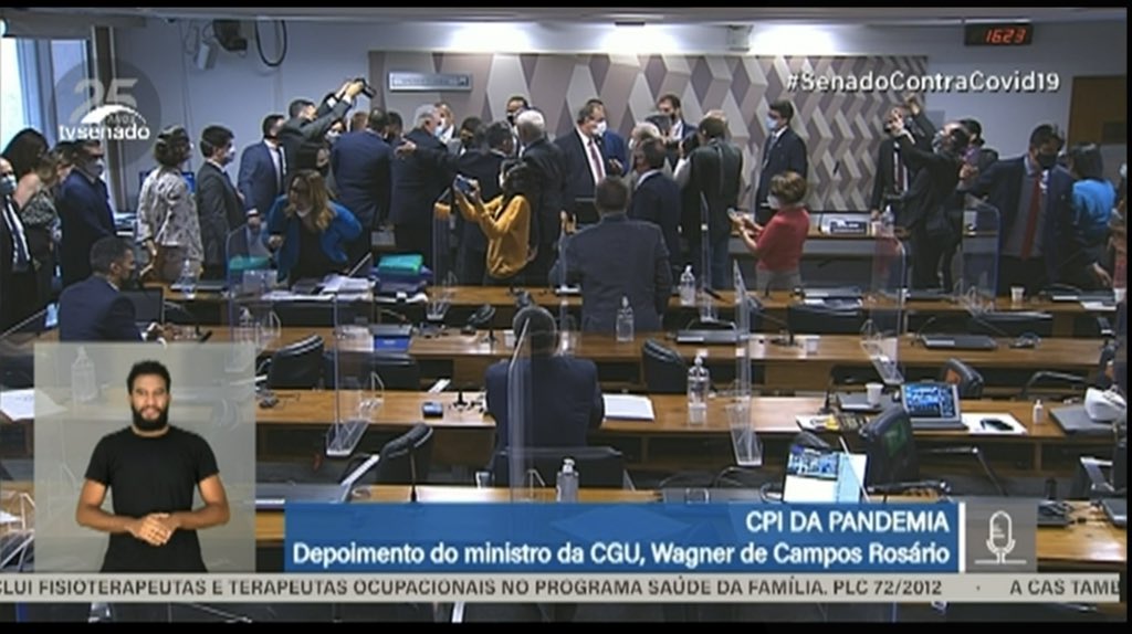 Já cheguei na #CPIdaCovid e está tendo briga porque Renan exibiu o vídeo de Queiroga mostrando o dedo, antes disto eles haviam informado que o presidente do senado irá investigar o vídeo do Jair Renan
