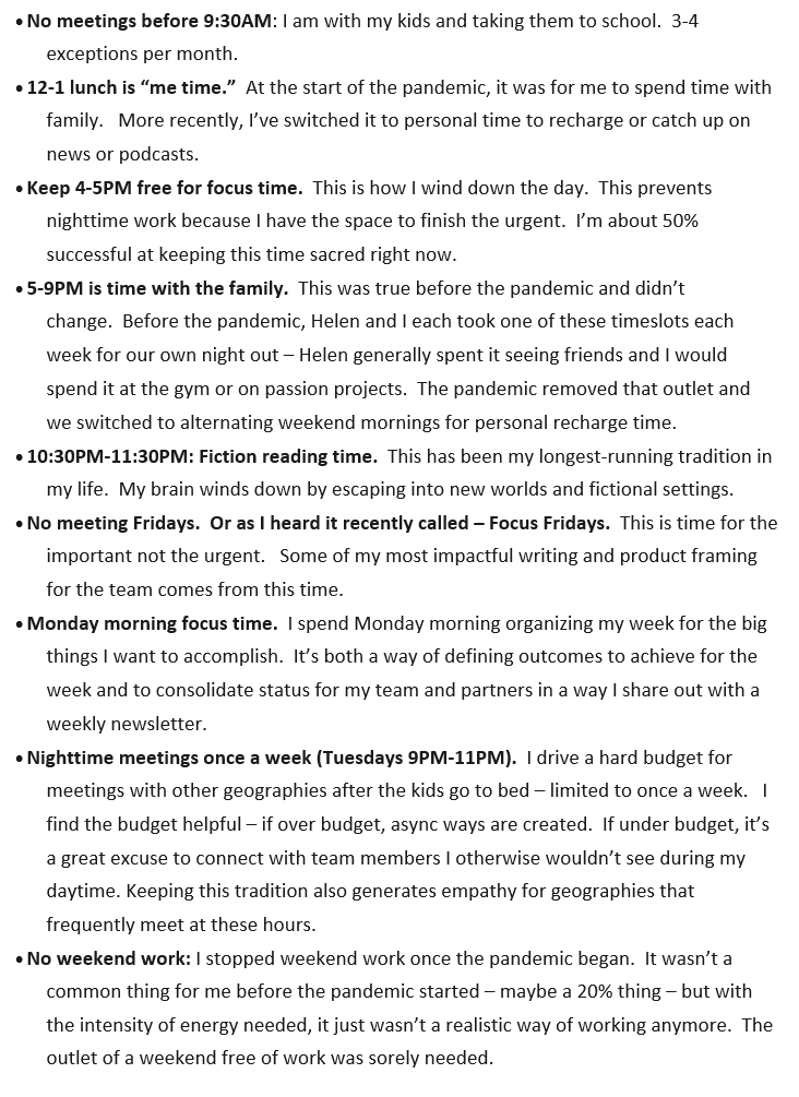 13/ If it helps, here the new set of boundaries I created over the past year or so. I didn't let the job define my boundaries, I optimized for my own peak performance and fit the job to match.