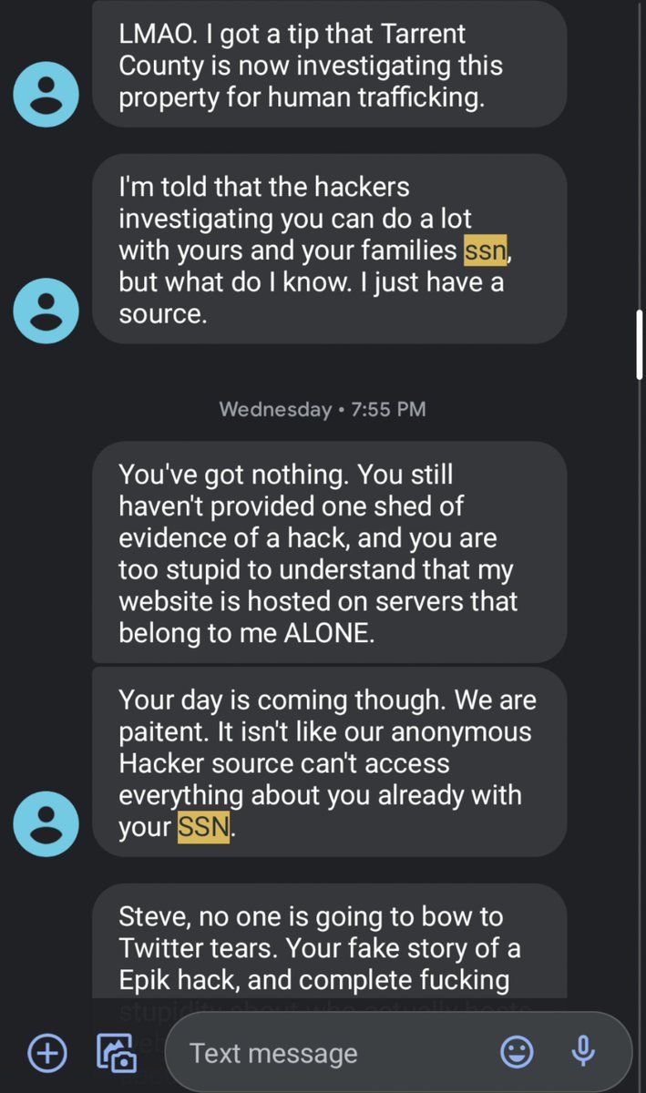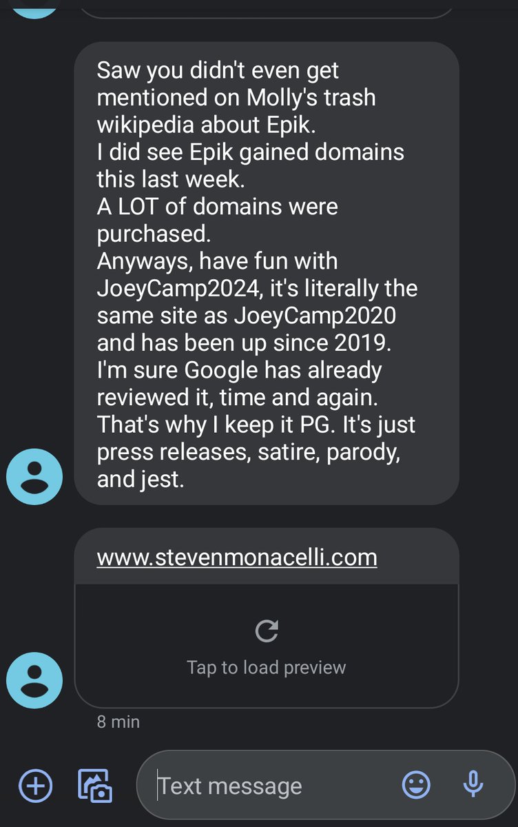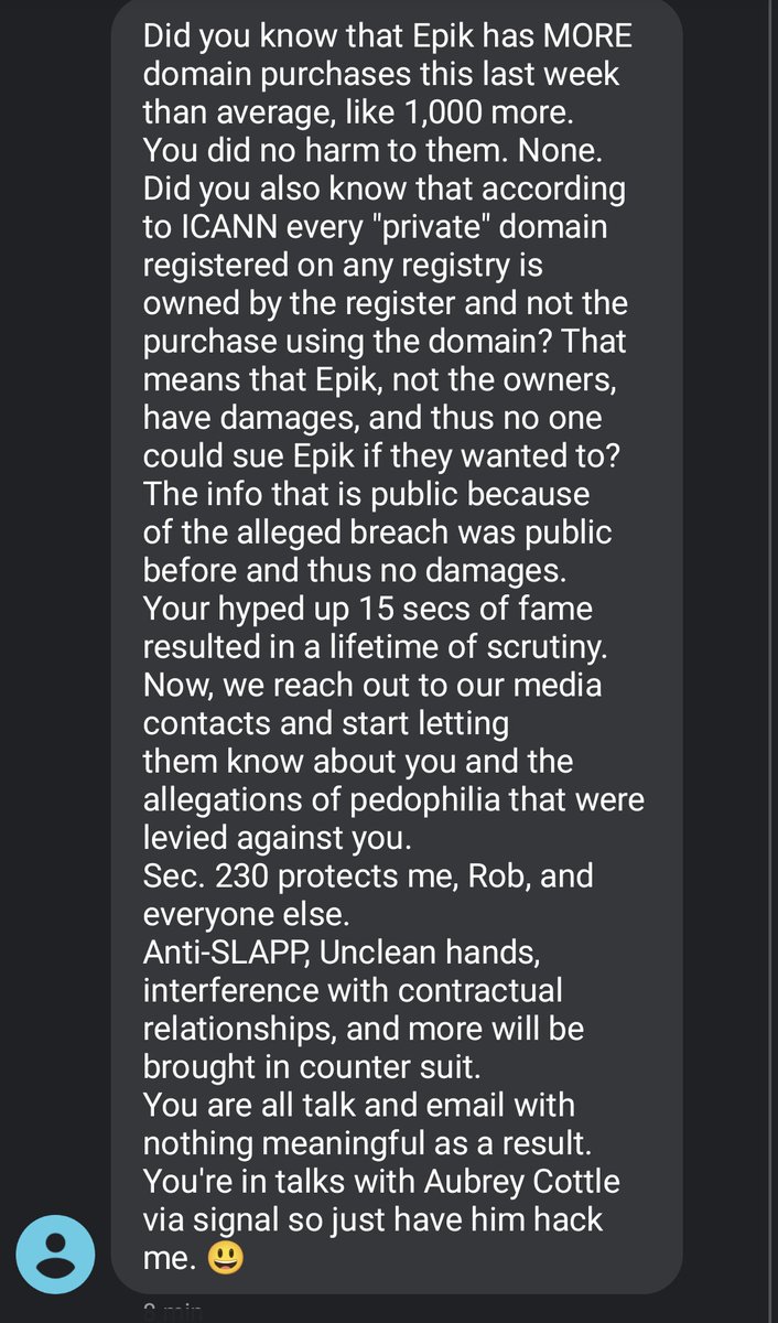 Here's a thread of some of the things Joseph A. Camp has sent me since breaking the Epik hack.