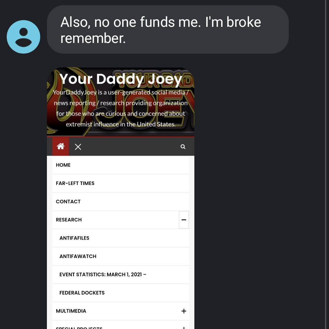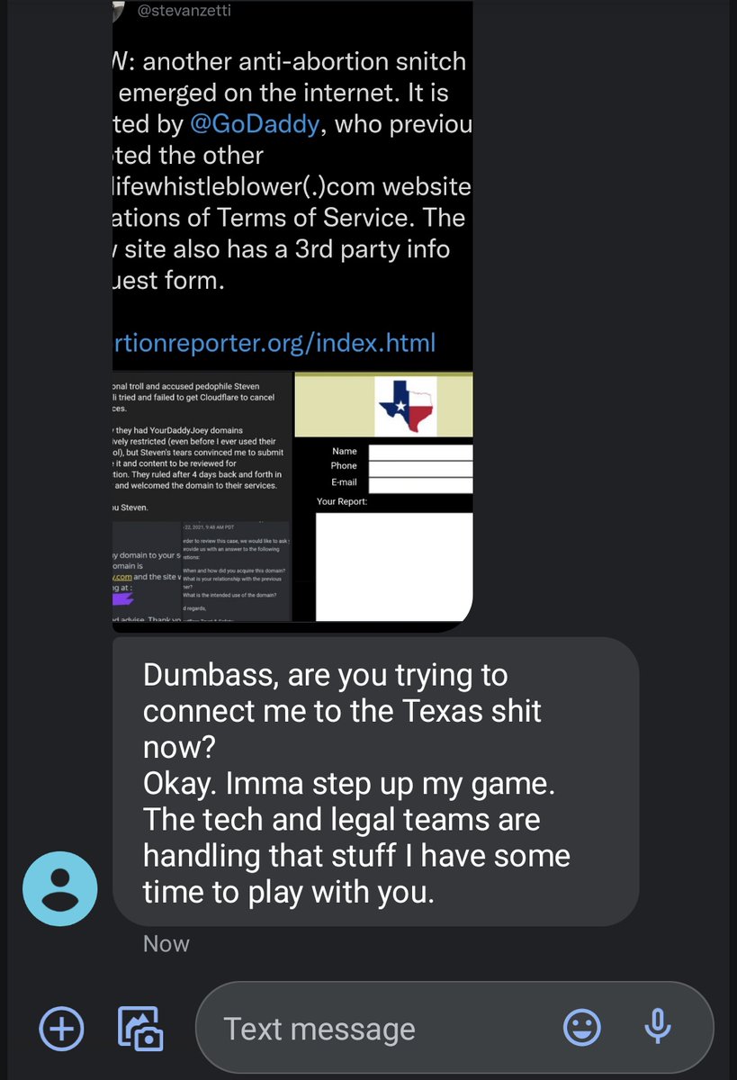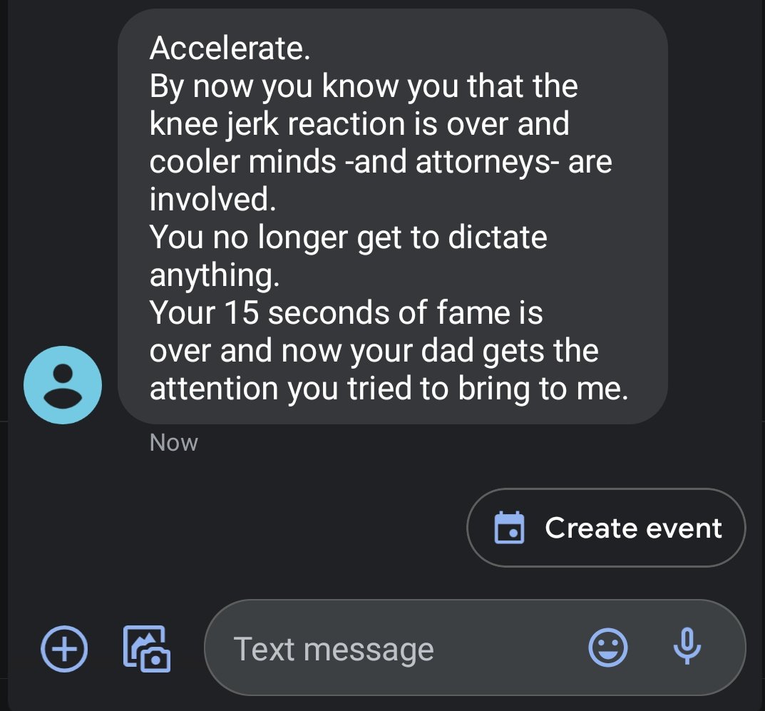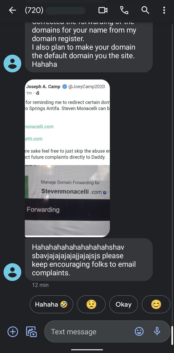 I accidentally uploaded the wrong screenshot because Camp continues to text me incessantly despite demands that he cease communication. I regret the error. The tweet has been deleted.