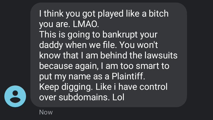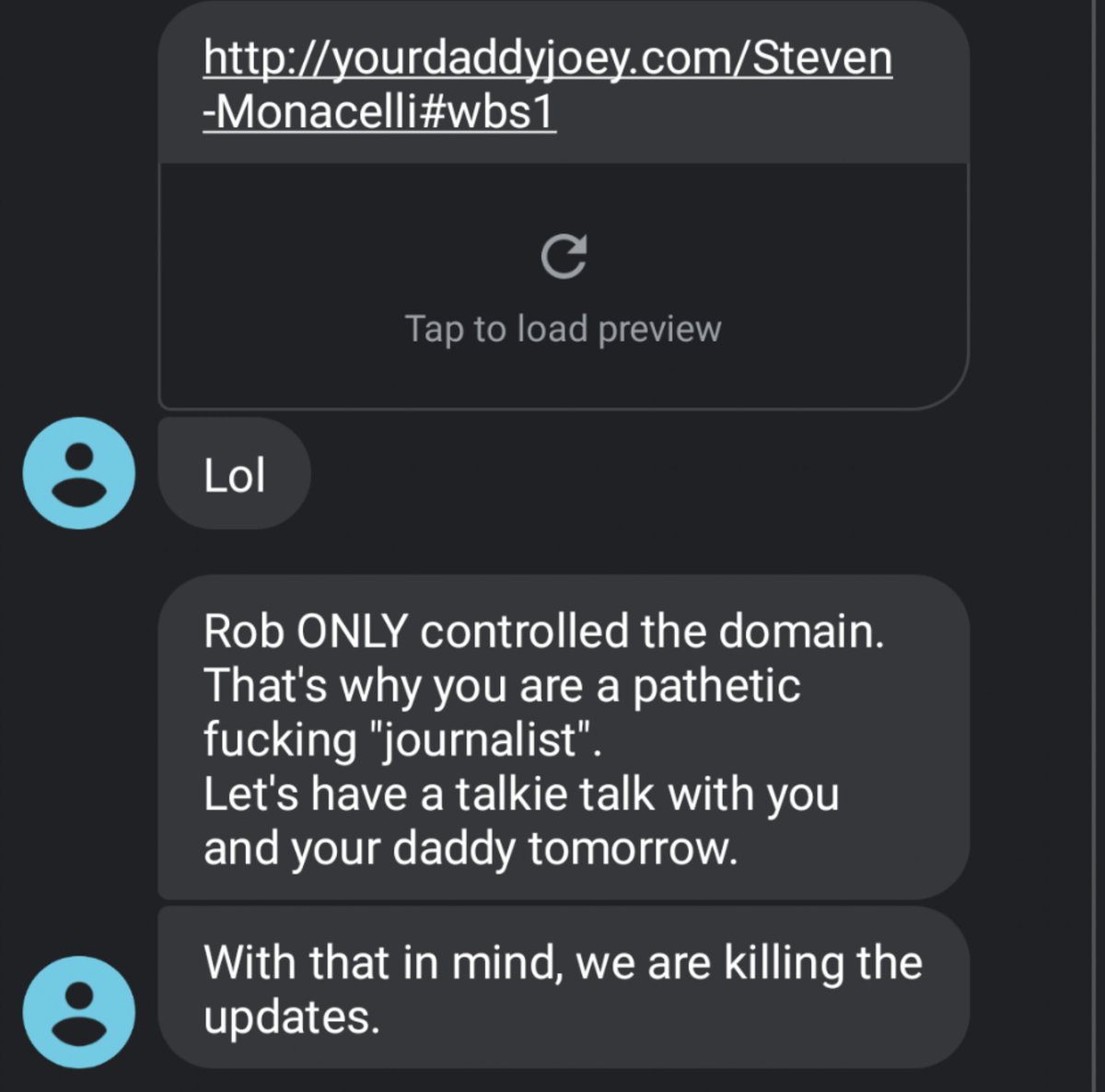 This is just further evidence of Camp's continued defamatory harassment despite explicit demands he cease all communication or face legal action.