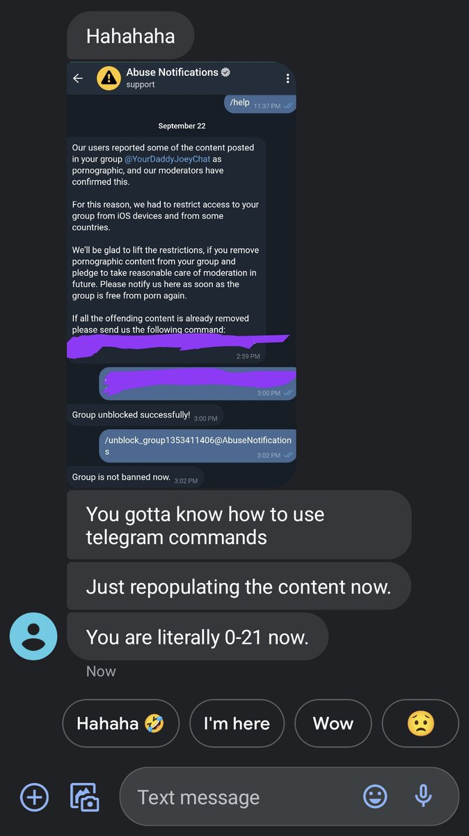 Clear statement of intention to break @telegram Terms of Service. Feel free to report his channel for repeat violations if he follows through.
