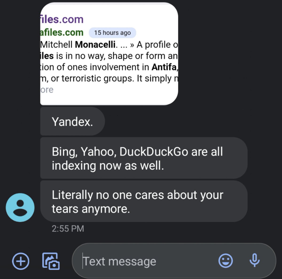 Hey @Google, do you realize you're indexing a site and allowing a serial stalker to expose my address and birthday on the internet?