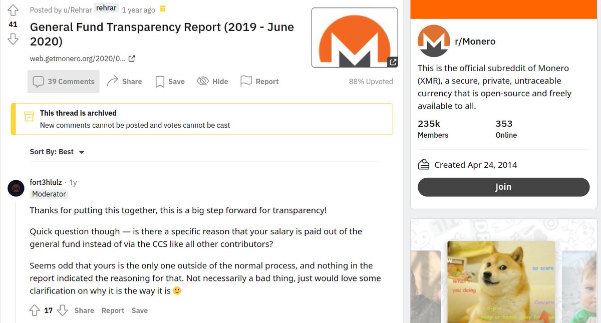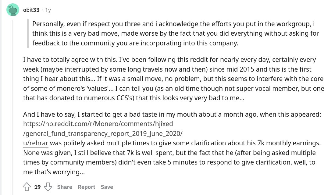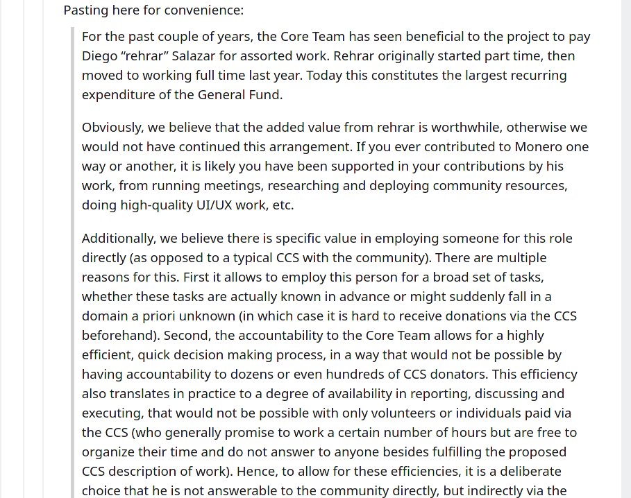 5/ News that Diego was a salaried employee of @monero , being paid $7k+/month (out of the community pot), was *not revealed* to Monero users until 2020 - over 3.5 years *after* the arrangement was made.