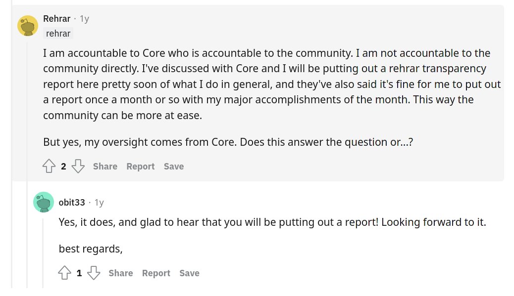 5a/ This prompted the community to demand Diego release a "monthly report" on the funds (since these are community funds after all), which he promised to do.