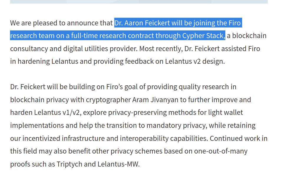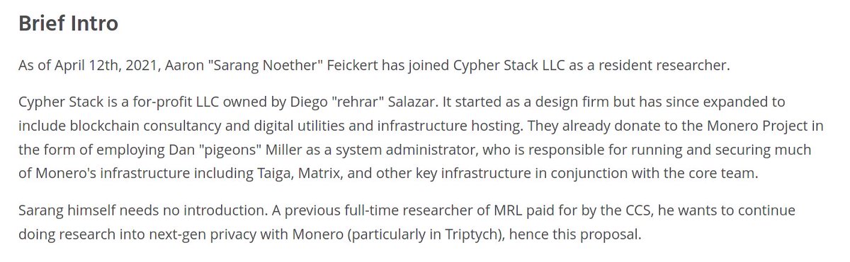 Yup, Cypher Stack (ran by Diego) hired a Monero core dev (Sarang) to build Triptych for *both* Monero AND Zcoin (privacy coin competitor) & then charged BOTH PROJECTS!